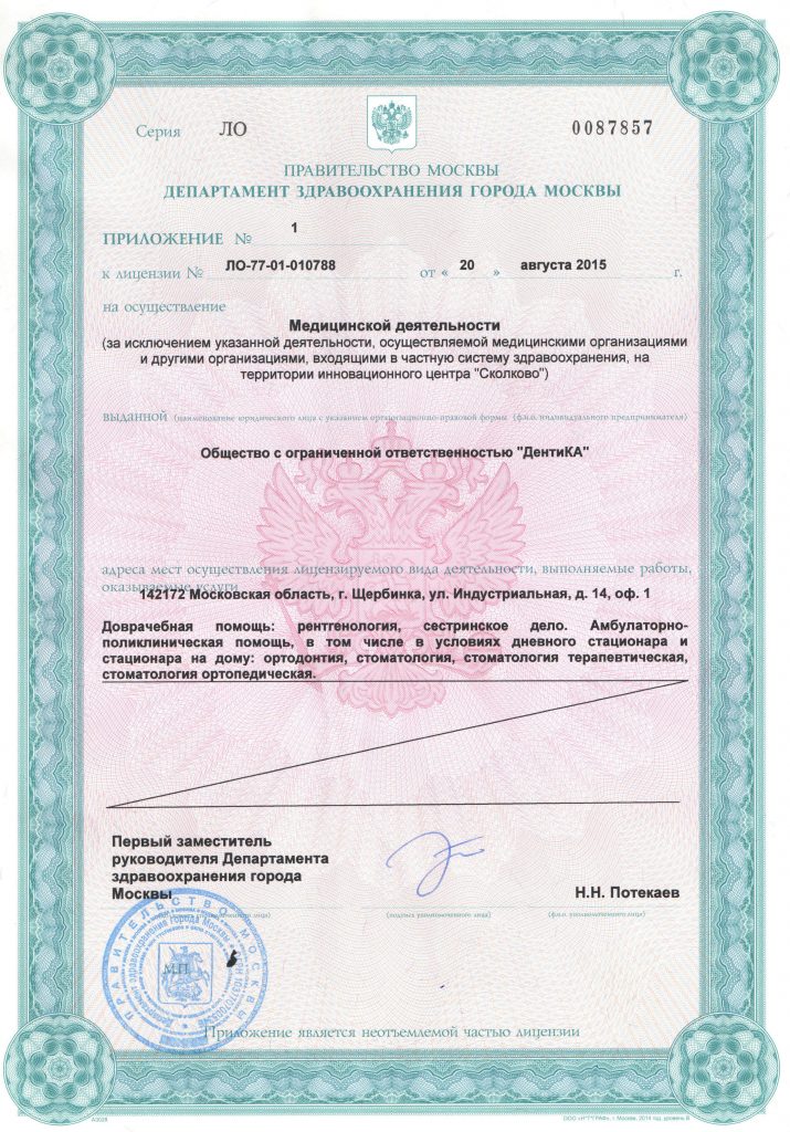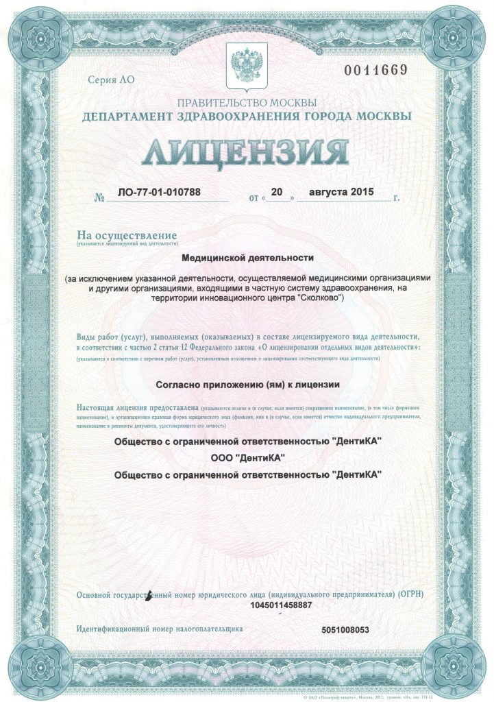 Врачи нашей клиники получили высшее медицинское стоматологическое образование в разные годы в Московском медицинском стоматологическом институте им. Н.А. Семашко (в настоящее время Московский государственный медико-стоматологический университет им. А.И. Евдокимова).